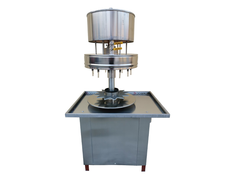 5若在工作臺面附裝自動進出瓶機構,便可配在流水線作業線上,實現自動灌裝。本機用于各類不含氣體的酒、飲料、調料、液體藥品以及其他液體的定量灌裝,特別是同規格的一批瓶子高度誤差在20mm以內,無需調整車就能同時進行灌裝。本機不受瓶形的限制,對各種異形瓶均可灌裝。